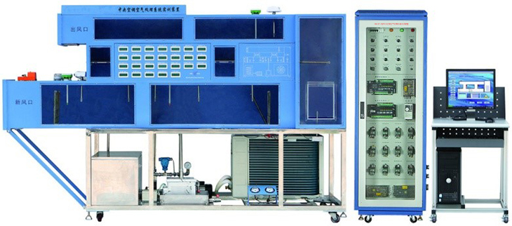 1.該系統(tǒng)由實(shí)驗(yàn)臺(tái)、空調(diào)冷熱源系統(tǒng)、空氣循環(huán)模擬系統(tǒng)、空調(diào)控制與測(cè)試系統(tǒng)和電氣控制柜等組成。使用不銹鋼和有機(jī)玻璃材料防止設(shè)備生銹和老化。設(shè)備配有真實(shí)的恒溫供暖、恒溫冷氣系統(tǒng),直觀生動(dòng)地把工業(yè)實(shí)際應(yīng)用展現(xiàn)出來,簡(jiǎn)潔明了。采用帶標(biāo)準(zhǔn)LonWorks通訊接口的控制器,保證了中央空調(diào)系統(tǒng)與樓宇系列其他子系統(tǒng)及管理層的無逢集成。
