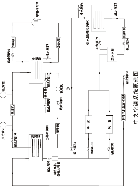 中央空調(diào)實(shí)驗(yàn)設(shè)備是將中央空調(diào)微型化,同時保持整個中央空調(diào)系統(tǒng)的完整性和合理性。本實(shí)驗(yàn)系統(tǒng)采用微機(jī)控制能單獨(dú)演示中央空調(diào)的夏天制冷、冬天制熱循環(huán),控制系統(tǒng)由電腦控制與手動控制二種方法演示。為了解各種參數(shù)的變化情況和系統(tǒng)的工作狀況。實(shí)驗(yàn)臺增加了一些輔導(dǎo)結(jié)構(gòu),使其能人為地制造各種實(shí)際中可產(chǎn)生的系統(tǒng)故障,方便學(xué)員了解故障的產(chǎn)生和排除故障的方法。