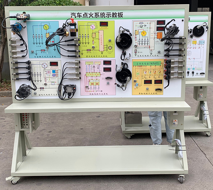 發動機電控單元、(儀表)防盜控制單元、防盜鑰匙、發動機各類傳感器、發動機各類執行器、檢測端子、故障設置系統、大容量蓄電池或12V開關電源、大型彩色噴繪電路原理圖、控制面板、可移動臺架、使用說明書及任務驅動式實訓指導書等。