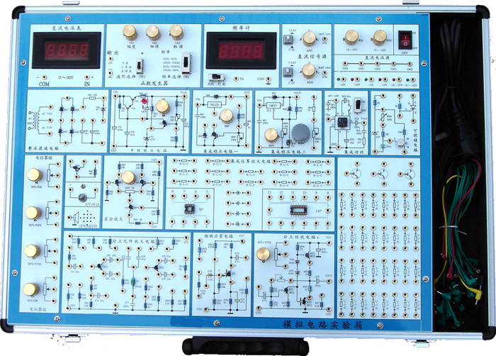 模擬電路實驗箱是根據(jù)最新的《高等工業(yè)學校電子技術(shù)基礎》教學大綱中確定的教學實驗要求為基礎,汲取了眾多專業(yè)教師的教學經(jīng)驗,并綜合了眾多同類產(chǎn)品的優(yōu)點而設計的。它函蓋了《模擬電子技術(shù)基礎》課程全部實驗內(nèi)容,既為初學者提供了驗證性實驗電路,又為課程設計提供了擴展平臺。