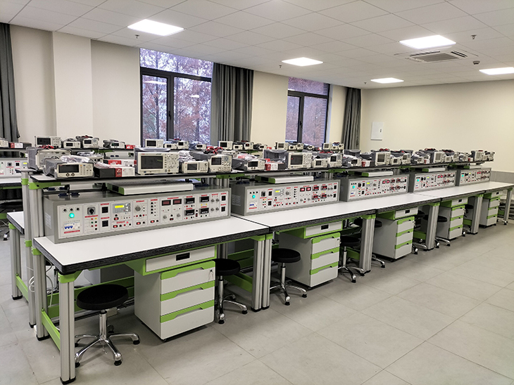 電工電子實訓室設備通過課程實訓主要培養學生電子電路的模擬搭建、測試、電子電路的設計、電工電路的搭接、測試及調試、電動機、變壓器的拆裝、檢修及控制能力,主要完成模擬電子電路分析與應用、數字電子電路分析與應用、電路與電工技術、電機拖動等課程實驗實訓使用,培養和提高實踐動手能力。電工電子技術實訓室設備、機電一體化技術、電氣自動化技術、電梯工程技術、建筑電氣工程技術等專業實訓《電路原理》、《電工技術》、《數字電路》等課程實驗。實驗臺采用碩博教儀的通用電工實驗裝置,學生可以明顯直觀地了解線路結構與實驗原理。電工電子實驗室教學目的是:使學生在電路基礎實驗的基本知識、基本方法和基本技能方面受到較系統的教育與訓練,加深與鞏固對電路的基本概念和規律的認識,培養學生具有初步的實驗能力,良好的實驗習慣以及嚴謹的科學態度與作風,為后續實驗課程以及從事電路基礎方面的科研工作打好的基礎。上海碩博弘揚大國工匠精神, 發展職業教育,應用教學設備,為企業培養高技能人才,電工電子電機變壓器的基本理論,培養中職學生實作動手能力。體現”寬基礎、強技能”的人才培養理念,使理論講解與技能培養有機結合在一起,符合學生的認知規律。可用作中等職業學校電工電子電氣技術實訓設備。而專業生產:高性能電工技術實訓考核裝置、高性能電工電子/電力拖動/儀表照明/自動化綜合實訓考核裝置、高性能電工·電子技術實訓考核裝置、高性能電工·電子·電力拖動技術實訓考核裝置、高性能電工電子電拖及自動化技術實訓與考核裝置、高性能電工電子電拖及自動化技術實訓與考核裝置、高級工電子技術實訓考核裝置、技師電子技術實訓考核裝置、高級技師電子技術實訓考核裝置、技師、高級工電子技術實訓考核裝置、電力電子高級技師實訓考核裝置、電力電子技師實訓考核裝置、電力電子高級工實訓考核裝置(無自動設故功能)、高級電工實驗室成套設備、高級模電、數電實驗室成套設備、高級電工、模電、數電綜合實驗室成套設備、高級電工、模電、數電、電力拖動實驗室成套設備、高級電工、模電、數電、電力拖動(帶直流電機)實驗室成套設備、電力拖動(工廠電氣控制)實驗裝置(帶直流電機)、電工技術實驗裝置、電工電子實驗裝置、電工電子電力拖動實驗裝置、電工電子電力拖動實驗裝置(帶PLC實驗)、電工·電子·電力拖動·PLC·單片機綜合實驗裝置、電工·電子·電力拖動·PLC·變頻調速綜合實驗裝置、高級電工技術實驗裝置、電工電子技術實驗裝置、電工電子電力拖動實驗裝置、現代電工技術實驗裝置、現代電工電子技術實驗裝置、電子學綜合實驗裝置、模擬電子電路實驗裝置、數字電路實驗裝置、電機及電氣技術實驗裝置、電機及電氣技術實驗裝置、電力拖動·PLC·變頻調速技能實訓裝置 、智能型電工/電子/電拖/PLC/單片機綜合實驗裝置。