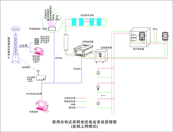 太陽(yáng)電池組件在太陽(yáng)光的照射下產(chǎn)生直流電流;太陽(yáng)能控制器則協(xié)調(diào)太陽(yáng)能電池板、蓄電池和負(fù)載的工作,具有自動(dòng)防止儲(chǔ)能蓄電池過充電和過放電的功能。蓄電池在系統(tǒng)中的作用就是存儲(chǔ)能量,還能對(duì)系統(tǒng)起著調(diào)節(jié)電量、穩(wěn)定輸出的作用。逆變器的作用是將蓄電池的直流電轉(zhuǎn)變?yōu)檫m合負(fù)載使用的正弦波交流電,逆變器輸出的交流電能進(jìn)入配電柜;在配電柜內(nèi)裝有用于輸出控制、過流保護(hù)、防雷保護(hù)等器件。
