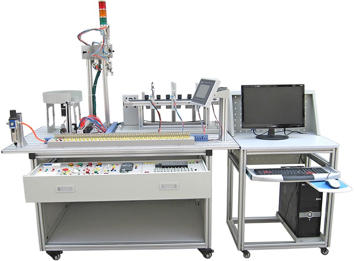 光機(jī)電一體化控制實訓(xùn)裝置由由鋁合金導(dǎo)軌式實訓(xùn)臺、典型的機(jī)電一體化設(shè)備的機(jī)械部件、PLC模塊、變頻器模塊、按鈕模塊、電源模塊、模擬生產(chǎn)設(shè)備實訓(xùn)模塊、接線端子排和各種傳感器、計算機(jī)等組成。整體結(jié)構(gòu)采用開放式和拆裝式,實訓(xùn)裝置用于機(jī)械部件組裝,可根據(jù)現(xiàn)有的機(jī)械部件組裝生產(chǎn)設(shè)備,也可添加機(jī)械部件組裝其他生產(chǎn)設(shè)備,使整個裝置能夠靈活的按教學(xué)或競賽要求組裝具有生產(chǎn)功能的機(jī)電一體化設(shè)備。模塊采用標(biāo)準(zhǔn)結(jié)構(gòu)和抽屜式模塊放置架,互換性強(qiáng);按具有生產(chǎn)性功能和整合學(xué)習(xí)功能的原則確定模塊內(nèi)容,使教學(xué)或競賽時可方便的選擇需要的模塊。設(shè)備需完全符合電工電子全國職業(yè)技能大賽所要求,同時還要求具有可拓展功能,可以組成更加大型的生產(chǎn)模擬系統(tǒng),以配合各個用戶學(xué)校不同層次,不同專業(yè)的教學(xué)及培訓(xùn)要求。