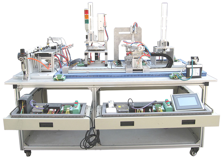 光機(jī)電氣一體化控制實(shí)訓(xùn)平臺(tái)由由鋁合金導(dǎo)軌式實(shí)訓(xùn)臺(tái)、典型的機(jī)電一體化設(shè)備的機(jī)械部件、PLC模塊、變頻器模塊、按鈕模塊、電源模塊、模擬生產(chǎn)設(shè)備實(shí)訓(xùn)模塊、接線端子排和各種傳感器、計(jì)算機(jī)等組成。整體結(jié)構(gòu)采用開放式和拆裝式,實(shí)訓(xùn)裝置用于機(jī)械部件組裝,可根據(jù)現(xiàn)有的機(jī)械部件組裝生產(chǎn)設(shè)備,也可添加機(jī)械部件組裝其他生產(chǎn)設(shè)備,使整個(gè)裝置能夠靈活的按教學(xué)或競賽要求組裝具有生產(chǎn)功能的機(jī)電一體化設(shè)備。模塊采用標(biāo)準(zhǔn)結(jié)構(gòu)和抽屜式模塊放置架,互換性強(qiáng);按具有生產(chǎn)性功能和整合學(xué)習(xí)功能的原則確定模塊內(nèi)容,使教學(xué)或競賽時(shí)可方便的選擇需要的模塊。設(shè)備需完全符合電工電子全國職業(yè)技能大賽所要求,同時(shí)還要求具有可拓展功能,可以組成更加大型的生產(chǎn)模擬系統(tǒng),以配合各個(gè)用戶學(xué)校不同層次,不同專業(yè)的教學(xué)及培訓(xùn)要求。