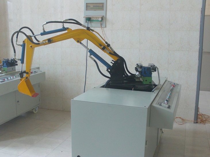 3、挖掘機械按實物比例縮小的全金屬結構,實驗時啟動液壓系統根據實驗要求模以操作機械進行工作。