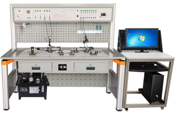 液壓綜合實驗臺由實驗桌、實驗操作區、網孔工具掛板、液壓泵站、常用液壓元件、主控機箱、電腦桌等幾部分組成。