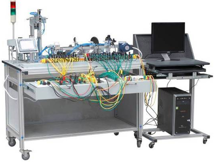 光機電一體化實訓考核裝置由鋁合金導軌式實訓臺、典型的機電一體化設備的機械部件、PLC模塊、變頻器模塊、按鈕模塊、電源模塊、模擬生產設備實訓模塊、接線端子排和各種傳感器、計算機等組成。整體結構采用開放式和拆裝式,機電一體化實訓裝置用于機械部件組裝,可根據現有的機械部件組裝生產設備,也可添加機械部件組裝其他生產設備,使整個裝置能夠靈活的按教學或競賽要求組裝具有生產功能的機電一體化設備。模塊采用標準結構和抽屜式模塊放置架,互換性強;按具有生產性功能和整合學習功能的原則確定模塊內容,使教學或競賽時可方便的選擇需要的模塊。設備需完全符合電工電子全國職業技能大賽所要求,同時還要求具有可拓展功能,可以組成更加大型的生產模擬系統,以配合各個用戶學校不同層次,不同專業的教學及培訓要求。
