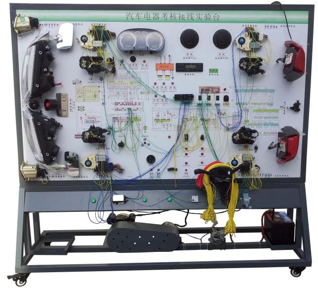 3.設(shè)備面板采用耐創(chuàng)擊、耐污染、防火、防潮的高級(jí)鋁塑板,表面經(jīng)特殊工藝噴涂底漆處理;面板打印有永不褪色的彩色電路圖;學(xué)員可直觀對(duì)照電路圖和實(shí)物,認(rèn)識(shí)和分析汽車整車電器各系統(tǒng)的工作原理。