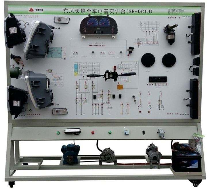 該設備采用全新東風天錦柴油機整車電器實物為基礎,充分展示汽車儀表系統、燈光系統、雨刮系統、喇叭系統、發動機電器系統、起動系統和充電系統等汽車電器各系統的組成結構和工作過程。