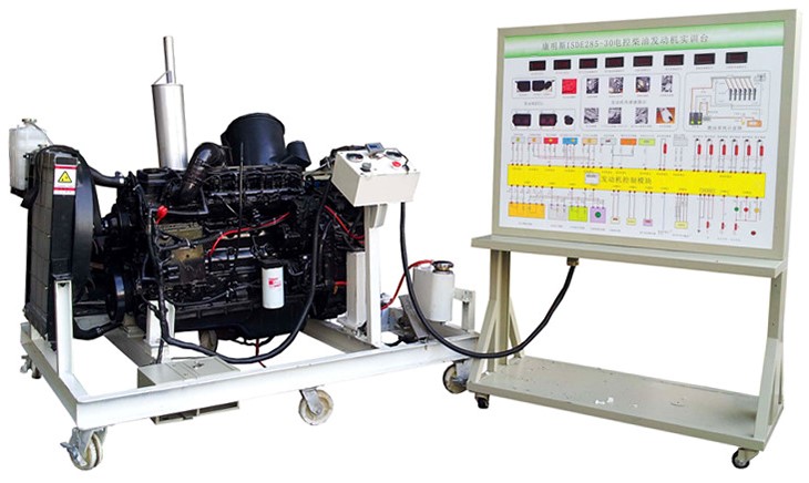 CA1125柴油發(fā)動(dòng)機(jī)總成、組合儀表、發(fā)動(dòng)機(jī)控制單元、散熱系統(tǒng)(水箱、風(fēng)扇、上下水管)、排氣系統(tǒng)、進(jìn)氣系統(tǒng)(進(jìn)氣軟管、空氣濾清器總成)、原車電路原理圖板及檢測(cè)端子面板、蓄電池、電源總開關(guān)、燃油箱、油水分離器、油門踏板裝置、可移動(dòng)機(jī)臺(tái)架、臺(tái)架高溫及轉(zhuǎn)動(dòng)等部位加裝防護(hù)裝置等。