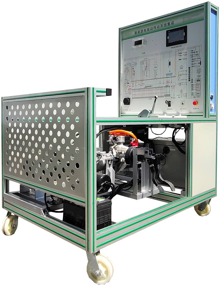 磷酸鐵鋰動力電池包及管理系統(帶CAN通訊,含24單體電池,放電繼電器,充電繼電器,預充繼電器,預充電阻,霍爾電流傳感器,維修開關,保險,充電接口,放電接口,低壓控制接口,動力電池采集模塊,BMS電池管理系統主控模塊,7寸液晶顯示屏)、驅動電機及運行部分、電子油門總成、換擋機構總成、儀表(帶CAN通訊)、變速箱、左右傳動軸、左右前輪碟剎、磁粉制動器(左右)、手動張力控制器,助力器帶泵總成,真空泵總成、電動真空助力剎車系統、真空壓力傳感器、真空罐總成、國標充電插口與充電槍、車載充電機(帶CAN通訊)、DC-DC模塊、故障設置系統、輔助蓄電池(12V45AH)、蓄電池斷電開關、急停開關、上位機軟件及數據線(電機與電池控制單元)、一體化全鋁合金型材搭建的移動臺架(1500×1000×1700mm ,帶自鎖腳輪裝置,帶安裝檢測端子的原理面板948×898mm)、故障考核系統、設備操作說明書。