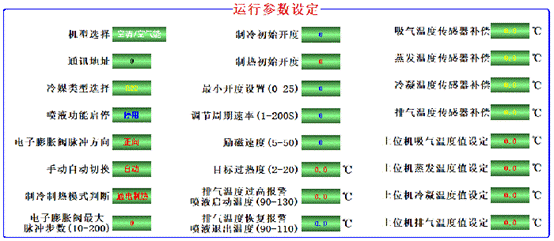 動(dòng)畫模式:觸摸屏或軟件連接模式下:可顯示壓縮機(jī)排氣溫度、吸氣溫度、冷凝溫度、蒸發(fā)溫度,可根據(jù)溫度實(shí)時(shí)調(diào)節(jié)機(jī)組過(guò)冷度。過(guò)熱度。