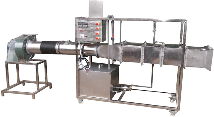 循環(huán)防腐水泵,轉(zhuǎn)子流量計、風(fēng)冷冷凝器,翅片管式換熱器,風(fēng)洞實驗段,多翼式低噪音離心風(fēng)機,自動調(diào)節(jié)風(fēng)門,笛形管及差壓測風(fēng)速裝置,加熱由固體調(diào)壓模塊無級調(diào)節(jié),控制測試儀表箱,不銹鋼加熱水箱,8路萬能信號輸入巡檢儀顯示溫度、水和風(fēng)的阻力及風(fēng)速。