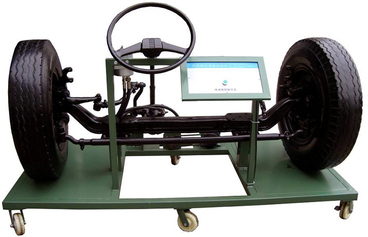 陜汽2220前橋轉向系統實訓臺選用 翻新陜汽2220汽車動力轉向系統原廠轉向橋總成、轉向器、轉向機構、轉向拉桿、擺臂等系統實物組成,把前橋總成、液壓助力轉向、懸架綜合系統、轉向機構等實物全部更直觀的展露出來,可進行動力轉向和非動力轉向的對比,充分演示原車液壓助力轉向、懸架系統的結構組成與工作過程及的原理、作用及變化。能夠滿足對動力轉向系統的結構組成,工作原理,實踐操作等教學所需。