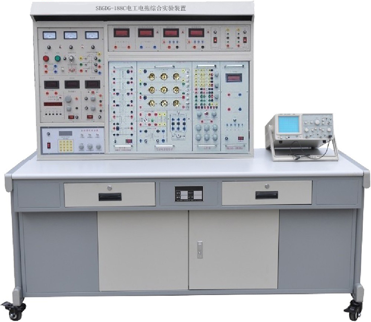 電工電子實驗臺“通用電工實驗設備”是根據職業學校、技工學校、中等專業學校的電工技術基礎、電工技能訓練、電工學等有關教學實驗大綱的要求而設計的。內容有直流電路、交流電路、正弦與正弦電路、磁與電磁。該裝置符合勞動部、機電部頒發的中級技術工人考核標準電工部分的內容,是理論學習、實驗驗證、技能訓練為一體的現代化電工實驗成套設備。電工電子實驗臺培養學生了解和掌握電子元器件及電工電子基本原理的能力,培養學生熟練使用電子儀器儀表的能力,為今后的專業實驗、實訓打下堅實的基礎。電工電子實驗室主要儀器設備:電工電子實驗臺、常用儀器儀表等。電工電子實驗臺主要實驗或實訓項目:分別開設強電和弱電的課程實驗和課程設計。實驗涉及課程包括電工學、模擬電路技術和數字電路技術,主要實訓課程有常用半導體材料及伏安特性的測試、集成放大電路、直流穩壓電路、示波器的使用、數碼顯示電路、集成觸發器特性、555定時器、單穩態觸發器、等非電類專業基礎實驗課。通過驗證性、設計性相結合的實驗項目,使學生掌握基本電路模塊的設計、測試技術,通過理論知識分析實驗現象和排除故障的過程,使學生了解了系統設計與工程設計過程,提高了學生的實際動手能力。電工電子實驗臺、電子綜合實訓設備,同時包含示波器、數字萬用表等配套設備。可開設我校醫學影像技術專業和醫用電子儀器與維護專業的《電子學基礎》、 《電工技術》、 《模擬電子技術》及《數字電子技術》等工學基礎類課程的實驗實訓。