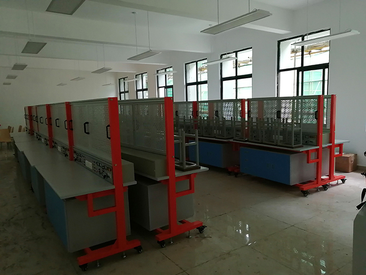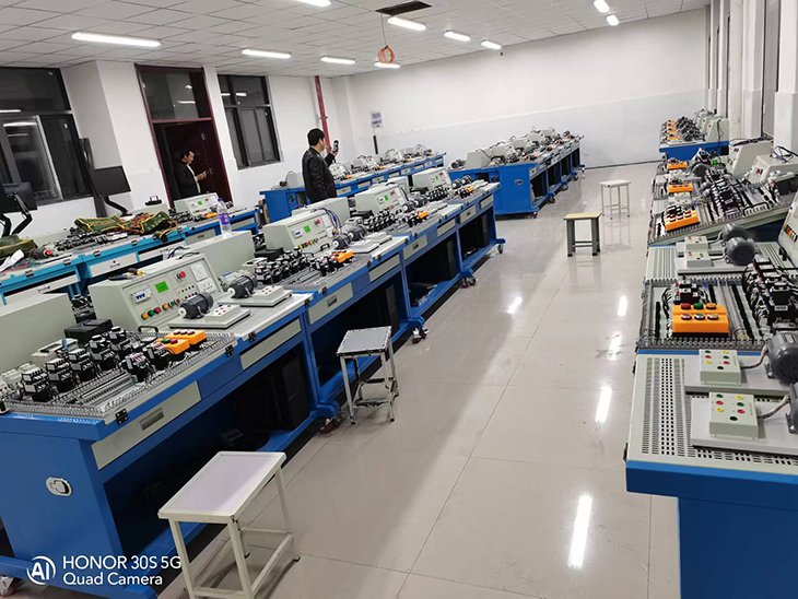 電氣安裝與維修實訓室包含了電氣安裝與維修設備、電氣安裝與維修考核裝置、電氣照明設備安裝調試技能實訓裝置該設備包含的實訓功能有:照明電路裝調實訓;電力拖動控制線路裝調實訓;PLC控制技術應用實訓;變頻器控制技術應用實訓;觸摸屏技術應用實訓;傳感器技術應用實訓;步進、伺服電機的控制實訓;CA6140車床電路檢修、M7120磨床電路檢修、T68鏜床電路檢修、X62銑床電路檢修等,是電氣自動化專業、機電一體化專業中多門核心課程的通用實訓設備。