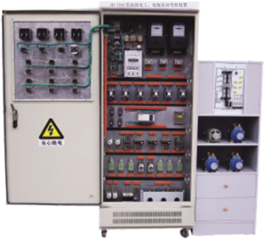 高級電工、電拖實訓考核裝置是按照勞動社會保障部頒發的“工人技術等級標準”和“職業技能鑒定規范”的內容要求,根據初級電工培訓考核的實際情況而設計的新一代集培訓學習、理論驗證、實際操作能力、考核鑒定于一體的多功能柜式設備。整臺設備以標準的電氣控制柜為主柜,利用柜體的雙面空間,布置電器 及配套實驗器材,能完成初級電工考核鑒定中的電力拖動控制與照明電路的實操項目,該電工、電拖實訓考核裝置堅持理論聯系實際的原則,突出技能訓練,注重針對性、實用性、科學性,經全國多家職業技能訓練中心、職校、技校使用證明,該柜體設計合理、實操方便,占地面積少。為延長電器的使用壽命,各電器的接點都與接線端子相連,再讓學生在接線端子上接線,連接電機、電器來完成各項控制實驗,有效降低材料消耗,延長使用壽命。該套設備適用于各勞動職業技能鑒定部門,同時適應各大、中專、技校、職校初級電工、電拖專業教學與實訓考核。
